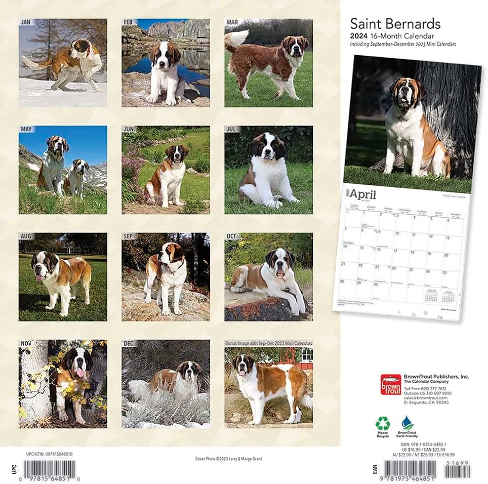 Saint Bernards | 2024 12 x 24 Inch Monthly Square Wall Calendar